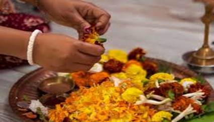 - थाली, कलश, चावल, अक्षत, पुष्प, पान, सुपारी, दीपक, धूप, मिठाई, सिक्के
